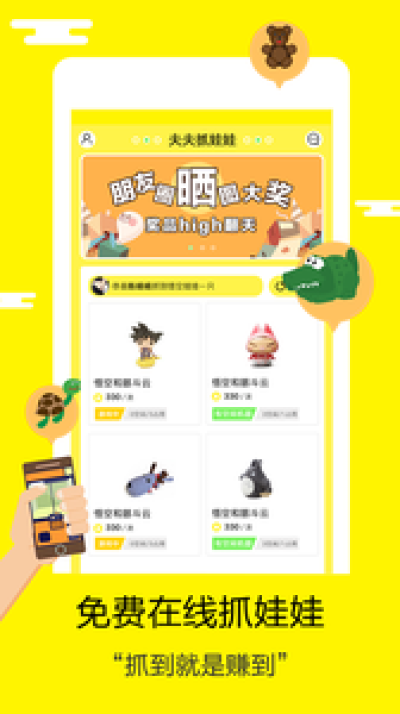 玩偶手办公仔抱枕,乖萌蠢呆搞笑逗贱,奖品每日更新,玩法层出不穷。