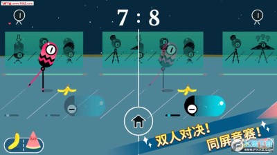 - 支持双人同屏比赛,丢西瓜皮和香蕉皮滑倒你的对手,嘿嘿