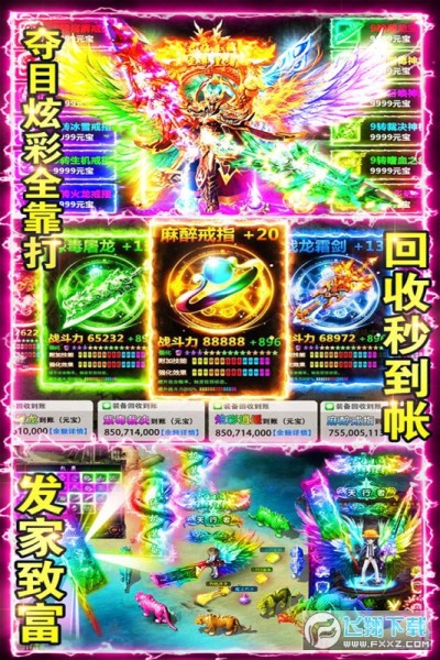 3.全图爆真实充值,首充、自动回收、自动分解全都免费换,花点时间啥都有,送满级VIP,满福利开局,刀刀爆充!