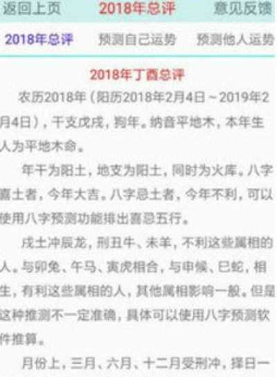 2018狗年运势是一款2018狗年运势运程查询软件,2018狗年运势根据易经分析2018年运势情况,给出相应建议,八字,六爻排盘功能,帮助易学爱好者快速排盘,是一款功能非常强大的2018运势运程查询软件。