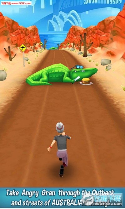奶奶跑出了养老院!玩家通过摇动手机及划动屏幕来控制老奶奶的向前狂奔,避开各种搞怪的有趣障碍,踢翻前来拦阻的护工。路上拾取的金币可以用来购买有趣的道具和服饰。