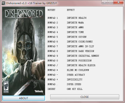 本修改器适用于羞辱v1.3版本的游戏,其他版本是否有效,请玩家自行测试.