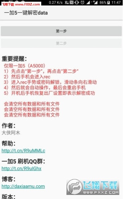一加5一键解密data软件针对一加5手机打造的一款解密data分区工具,支持android8.0以下系统,帮助大家一键分区解密,如果不会用的朋友下面还有详细的1+5教程。