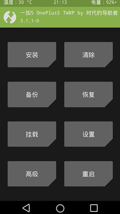 解锁bl锁之后,手机关闭锁屏密码清除指纹,用时代领航者的工具箱刷入他的twrp(他的twrp集成了root功能,避免了格式化data分区之后挂载data分区电脑不显示磁盘的情况),进入rec,选择 清除,在右下角 选择 格式化data(此操作会格式化手机内存,如果要备份数据可以先在rec挂载data分区把数据备份到电脑再进行此操作),输入yes 进行格式化data分区,格式完data分区不要重启系统!不要重启系统!不要重启系统! 返回rec界面,选择重启,重启到recovery,再次进入rec后,选择 高级-工具箱-root设备,root完成之后重启系统就可以了。