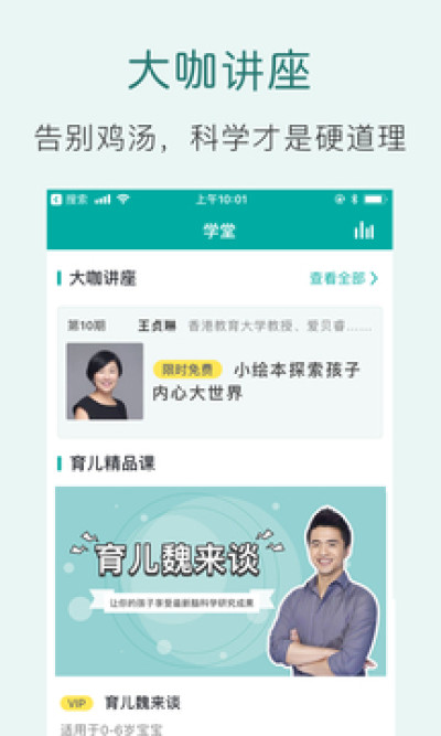 三大重磅功能——专业科学早教、精品家长课堂、暖心育儿社群。