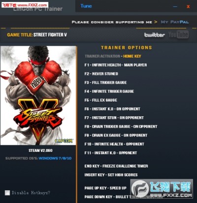 街头霸王5 v2.09十五项修改器,一共可以给玩家提供无限生命、无限空间、子弹时间、永不昏迷等等非常实用的功能,为了保留游戏的可玩性,可根据自己的需求来进行修改!