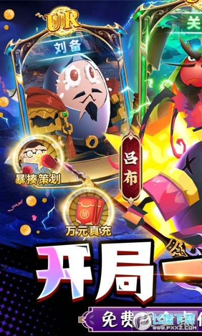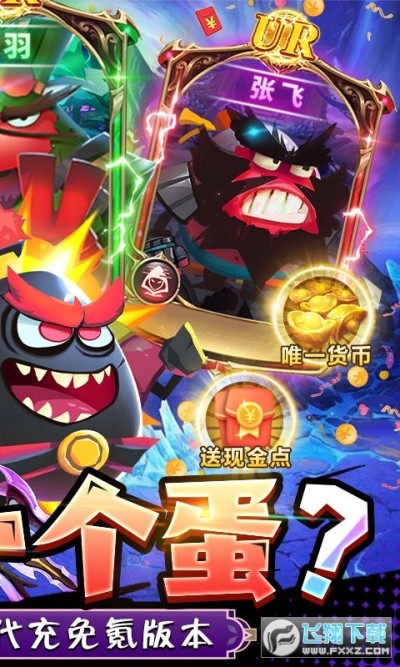 《蛋国志送关云蛋刷充》首款贱萌卡牌“神”作~摸鱼挂机,试炼闯关爆笑不止~竞技场、跨服战、天榜争夺、军团互殴……7v7对抗玩法,超高速对决。无论你是佛系玩家还是肝帝,都能在这里找到无限乐趣!荒诞画风Q萌可爱,加入军团,和兄弟一起挑战各路高手,从江湖小虾米不断历练成蛋国霸主。