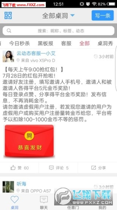 桌洞APP是一款专注大学群体的社交平台,集商城与社交功能于一体,专注大学生的日常社交和互动,让话题也能赚钱,让免费成为现实,这就是桌洞!社交功能可以随时随地发表你的动态、聊天、点赞、交友互动专业服务于大学生的金币商城,不花钱就可购物,只要你每日登录,发布动态,即可免费获赠金币,换取你喜欢的商品。