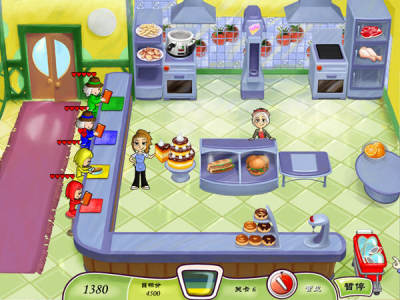 本作的最大特色在于FLO可参与菜肴的制作环节,但对于一款考验速度和敏捷操作的动作模拟游戏来说,菜肴的制作部分简单,品质也不是关键,还是需要玩家讲究策略,合理的安排。游戏中延续了5个餐厅场景、50个关卡的经典结构,过关后的设施购买升级也是重点。