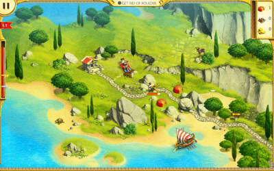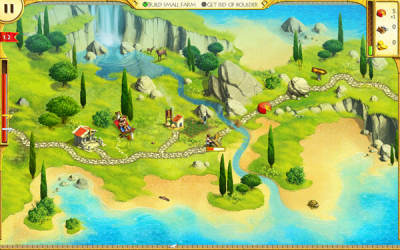 《大力神的12个劳工》是一款很典型的时间管理类游戏,游戏的剧情相当简单,讲述的是大力神赫拉克勒斯正翘着二郎腿悠哉地躺在庭院中听着小曲,忽然一个坏家伙从柱子后冒了出来,直接把弹琴的女子扛起来就跑。由于大力神赫拉克勒斯是力量型英雄,追不上这种买了鞋的敏捷型英雄,于是和他的劳工一路追踪着坏蛋走遍了全世界。
