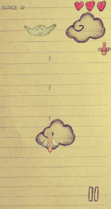 《乱涂小飞机》是一款以增强玩家反应力和灵敏度为目的的一款飞行射击游戏。游戏界面以及各种素材均为独立制作者的彩铅绘图,画风简单可爱,游戏操作有触屏操控和重力感应两种模式,在游戏的过程中,玩家控制飞机击落敌机来获取积分。