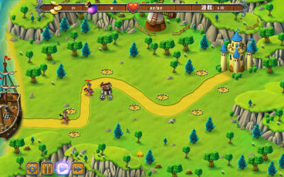塔防类游戏最大的bug就在于——为什么游戏里的敌人会按照你给出的路线行军啊!指挥官做了脑摘除手术么?咳咳,回到正题,游戏的画面采用了卡通风格,自然不会太瞎眼,游戏中的防御塔、升级等元素也都做得中规中矩,算是一部一般的塔防游戏。
