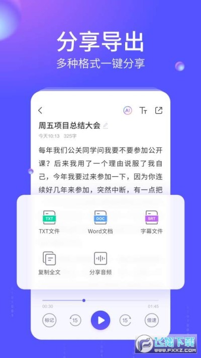 音频和文本转换结果,支持一键导出到第三方应用,分享编辑更方便