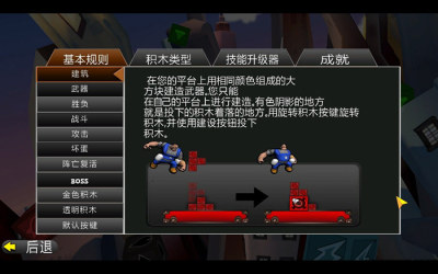 迅猛雷霆大作战是一款极富创意的动作游戏,游戏将格斗和俄罗斯方块结合在了一起。玩家扮演的是一名星球上的工程师,与怪物战斗获得建筑炮台的材料,这些材料与俄罗斯方块类似,只要将材料摆放成方形,就能产生炮台。炮台会与敌方的炮台或者boss对轰,而你在收集材料的同时还要与敌人格斗,阻挠敌人获得建筑炮台的材料,当然敌人也不会被动挨打,也会与你战斗阻挠你获得材料,每次生命值归零,都需要一定的时间复活,抓紧敌人复活的时间努力发展自己的炮台,最终目的就是摧毁敌人或者建筑。游戏同时还支持多人组队,最多四人进行游戏,快节奏的战斗让人应接不暇。