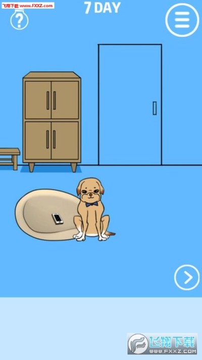 在右边打开冰箱拿到骨头。不要直接把骨头给狗,要先打开门把骨头放在门口引来另一条小狗,这时就能拿到坐垫上的手机了。