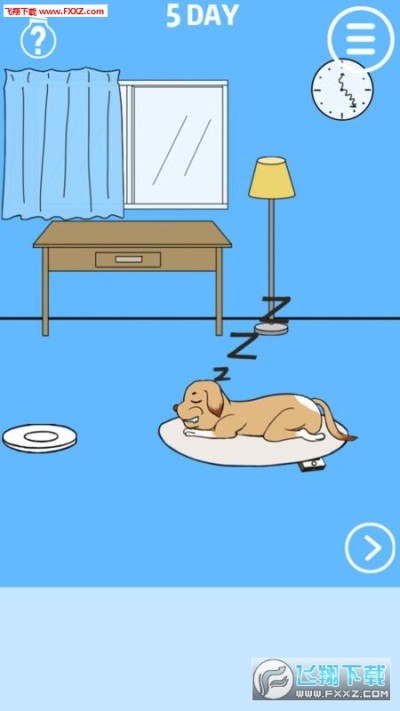 点击去右边画面。打开冰箱拿到里面的肉片。把肉放在盘子里,叫醒狗狗移开坐垫拿到手机。
