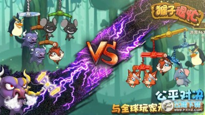 别看这些动物这么可爱,打起来一个都不含糊。别忘了,这可是款竞技游戏,虽然打起来根本没有常规对战的紧张感,但也是全球实时PVP的。玩家需要将动物们和各种棍绳进行组合搭配,选择最适合自己的方式,将对面的动物击落绳下。这样的弹射玩法不需要玩家有多犀利的操作,一键瞄准即可发射!