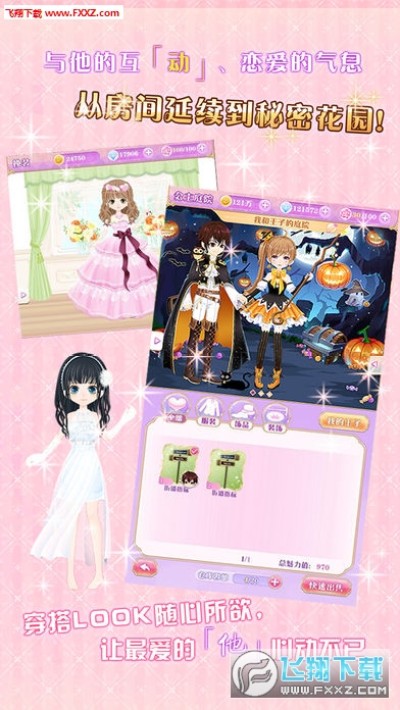 在王室公主更衣室内,有着无数的时尚配件与可爱礼服,今天的公主要穿上什么,让王子们耳目一新呢?他看着你穿上高贵的礼服、美丽的发型、精致的妆容,又做出了什么反应呢?在公主房间挑选后,赶紧去王子的庭院让他见识你的魅力吧;
