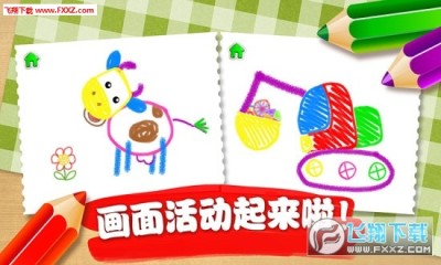 你的孩子可以画出可爱的蝴蝶、青蛙、汽车以及许多其他的东西。在你画完之后每一个角色都会活过来。