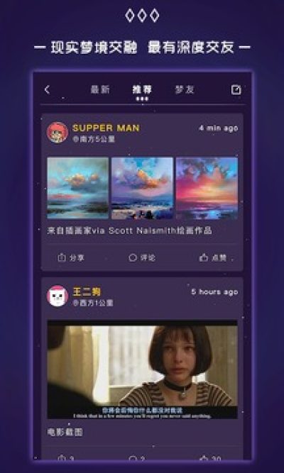 1、增加现实圈子,让梦境与现实交融,史上最有深度的社交来袭,我懂你的特别