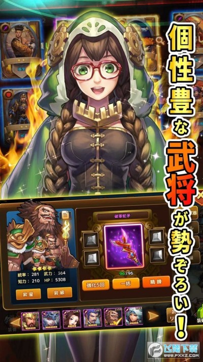 乱轰三国志是一款二次元风的养成策略类手游,游戏中玩家可以收集养成上百名武将,每名武将都有精致的卡面和独特的能力,玩家可以使用自己的武将展开6V6的对战,游戏内中日同服,玩家可以随时体验到跨国战斗的乐趣,喜欢的这款游戏的玩家一定不要错过哦!