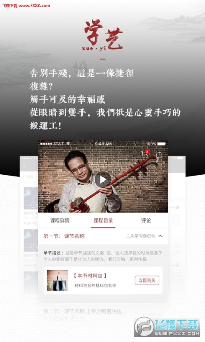 手艺app是专门为艺术大师推出的一款分享和学习的平台,能够让艺术人的手艺得到发展,在手艺app中有学手工、聊手艺以及淘作品等功能,并且和各大网络公开课合作提供视频学习课程,手工爱好者可以在这里学习到更多的手工艺,喜欢的朋友赶紧下载吧