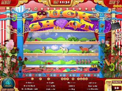 游戏足足包括了300个关卡,每4小关卡为一章节,除第一关是单词找物品外,其余3关需要玩家启动水晶球来决定游戏类型。你还可以通过在画面中寻找或玩3种迷你游戏赢取奖卷,来购买游乐场中的玩具和纪念品,并把它们摆设在陈列室中欣赏。
