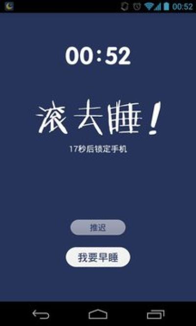 「我要早睡」是一款新颖、实用的睡眠辅助软件,巧妙解决了「玩手机不睡觉」这一世界性难题。
