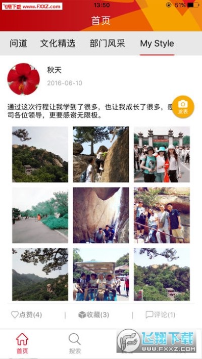 期刊在线APP是供研天企业文化资讯分享平台,包括问道、文化精选、部门风采、My Style等多个栏目,员工能够进行资讯分享、评论,文章点赞、收藏。