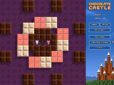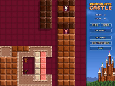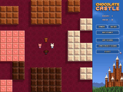《巧克力城堡》是一款画面可爱的益智游戏,游戏的剧情讲述的是在巧克力城堡中住着四只小动物,小兔、小猪、小熊、小狗,它们分别以资深颜色相同的巧克力作为食物,一只小动物只能消除一次,但大小不限。游戏的场景中分布着许多的巧克力,同时也有许多的障碍,你需要拼接起相同颜色的巧克力,然后让小动物全部消除掉。
