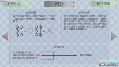 游戏中的机器人是自我进化型的。它会不断吸取每一局的经验教训让自己成长。同样的招数它经历过多次以后就会牢记住,不再被坑且能用它对付自己的对手。所以这个游戏的真正玩法不是去赢机器人,而是努力把机器人培养得越来越强大!