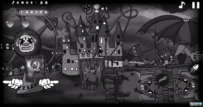 2、控制角色不断闯关,与来袭的鬼魂、僵尸、女巫勇敢战斗。