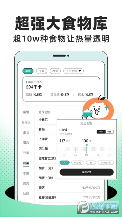 海量食物库,营养元素和卡路里清晰可见,吃得明白,瘦身看得见。