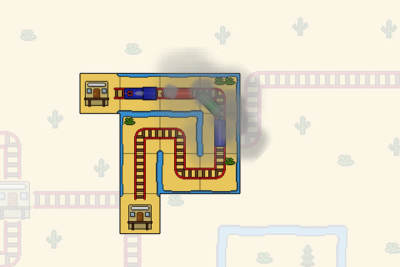 游戏中铁轨被分成多块,玩家要把分散的铁轨重新整合成一条完整的,整体感觉有点像拼图游戏。玩家可以按住鼠标左键滑动来移动分散的铁轨,直到拼成完整的铁轨,让火车可以顺利的到达终点。