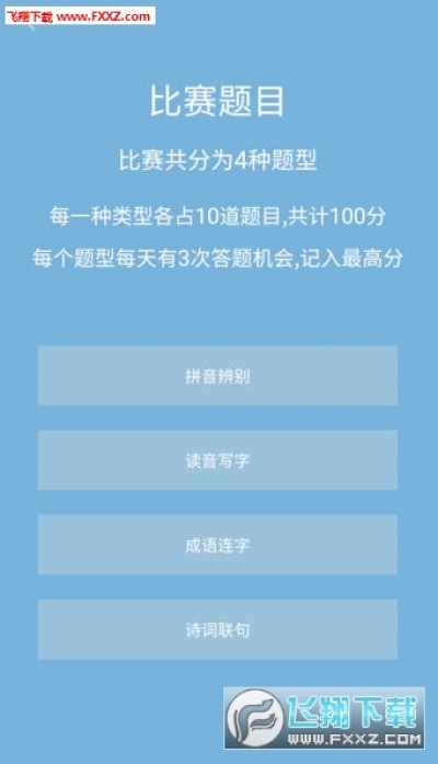 汉字大赛app为了提高广大年轻人规范使用汉字的意识和能力,营造学汉字、用汉语、爱中华传统文化的良好氛围,特设计了基于移动端的汉字大赛软件,每天答题来刷分,以获取排行榜的好成绩,来促进同学们的学习热情,以至于提高大家的汉字能力。