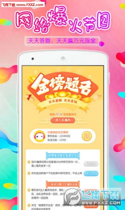 kk直播金榜题名答题软件是一款2018最火的答题平台,最近刚刚上线的金榜题名答题软件,这里答题奖金额度更高,有更多的知识含量内容,只要答对12道题目就可以瓜分百万现金大奖哦!
