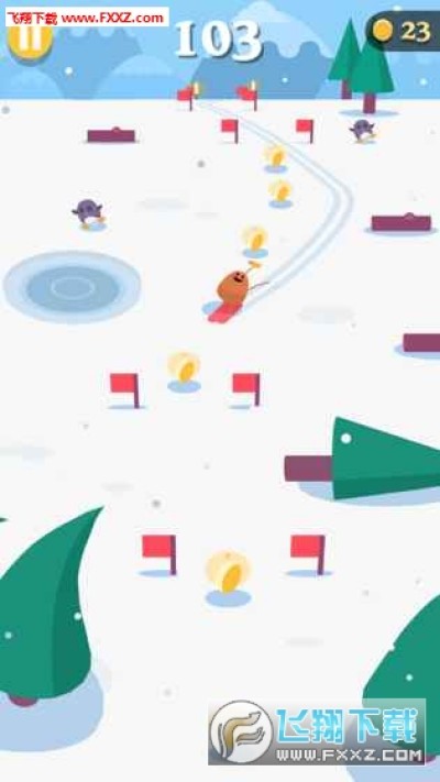 让豆子从陡峭的山坡上下来,但要小心那些厚脸皮的企鹅。