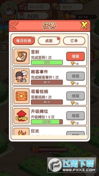 另外,游戏中还有丰富的任务系统,里面不仅有每日任务、成就奖励,还有订单等丰厚的奖励领取。