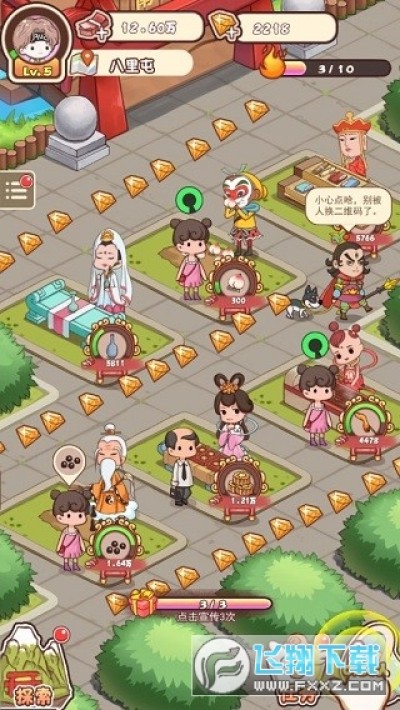 神仙也摆摊是—款定位于卡通风格的西游题材创业游戏,当中拥有超清脱俗的画面设计,玩家可在游戏当中展开没有任何限制的佛系娱乐,让玩家在任何场合掏出手机展开一场手机上的"地摊经济"。