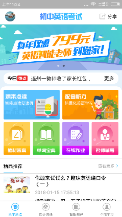 初中英语阅读app我用户可以先从说英语、听英语开始练起,你可以在这个平台看到很多非常经典的英语小故事。这些故事能够慢慢的锻炼你的听力能力,支持课本点读、单词宝典里面也包含了初中教学大纲里面的所有的词汇。