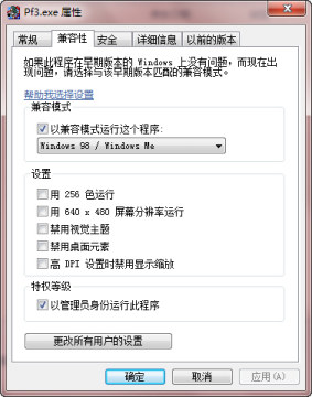 本作存在兼容性问题,玩家如果遇到游戏进不去的问题可以尝试调成Win98或XP兼容模式运行.