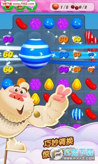 1、一次消除四个相同的糖果可以获得条纹糖果。
