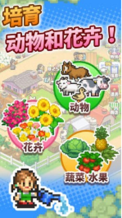 起初只是一个开园前的小牧场,通过慢慢培育动物、花卉和蔬菜水果,雇佣员工,新建商店,吸引顾客过来游玩吧。