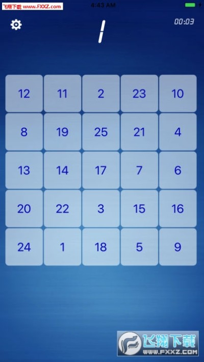 训练时,要求被测者用手指按 1 ~ 25 的顺序依次指出其位置。数完 25 个数字所用时间越短,注意力水平越高。