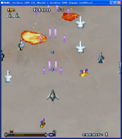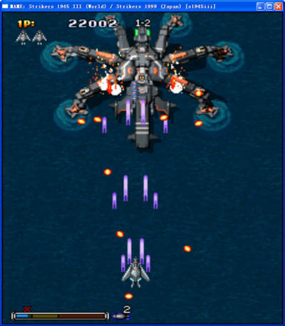 X-36:先要在MAME目录下建一个nvram目录。进入游戏后按F2,在Maintenace Mode中输入01999,之后回到游戏,在问号处按上。选1-6 2-6的Boss:Boss出来之前,会出现三个圆孔,站在中间,是双子星;站在左边或右边是白彗星。
