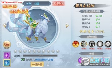 坐骑可以通过消耗两种坐骑进化水晶获得进化值,其中使用低级进化水晶时还有机率获得多倍进化值,进化值满即可提高星数加成属性;当前阶级坐骑满星即可成功进阶,解锁全新形象,同时移动速度进一步提升。