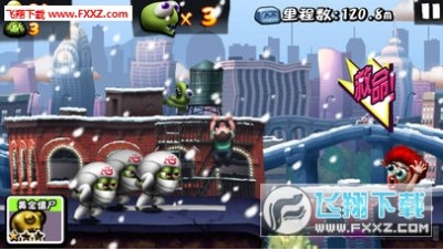 道具:跑的过程中会有一个类似于,箱子的东西,跳起来碰到他,就会随机给你一个道具。道具的种类貌似有波浪(超爱)UFO(隔段时间来个僵尸)小金人(碰到的障碍都会变成金币)橄榄球员(铁头功2333)忍者(跳的贼高,可以把障碍切开)大头僵尸(僵尸会
