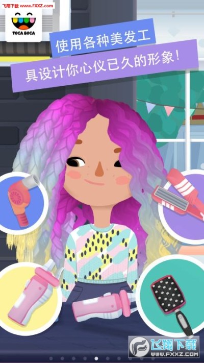 欢迎使用 Toca Hair Salon 3!这款人气爆棚的应用现已全面升级,强势回归!今天你想设计一款什么发型呢?时尚独特的,可爱俏皮的,还是个性十足的非主流发型?你可以从几十种自定义装扮中选择喜欢的角色 - 随机为这些角色搭配发型和服饰,可以给你带来无穷的游戏乐趣!拿起你的美发工具,随心所欲地打造各式各样新潮的发型吧!