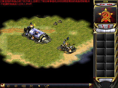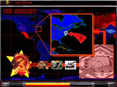 这关主要的对手都是蓝色的敌人,所以让蓝的断电是关键;建议从右上方突破,先造十来艘无畏级,将沿岸的防空干掉,然后飞兵过去干掉右上的部分防空,再吸引其它防空,将装有间谍的飞机(多准备几架一起)登陆(此时的飞兵差不多都没了);间谍登陆后,让它们尽量往右边上靠(右上边的建筑物要灭光),再派一对飞兵过去,消灭第二个黄的核电站(如果不消灭,间谍无法通过进入蓝色电站;如果消灭第一个,间谍都会辐射死),等核辐射消失,让间碟进蓝的核电站,最后配合飞兵即可过关;