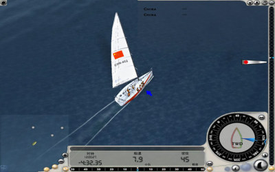 八、艇舵:是帆船装置附件,用来控制帆船航行的方向。帆船的舵有两种:一种是固定舵,具有钢性舵柄的固定式舵叶;另一种是提升式舵,具有分离式的舵柄。固定舵主要用于龙骨艇,而稳向板艇和平底艇通常用提升式舵。在游戏中,我们以LEFT、RIGHT键来控制帆船的航向,DOWN为回中健。在操控船舵时,应根据船速、风力大小等因素柔和打舵,尽量避免使船带着大舵角航行,增加阻力影响航速。